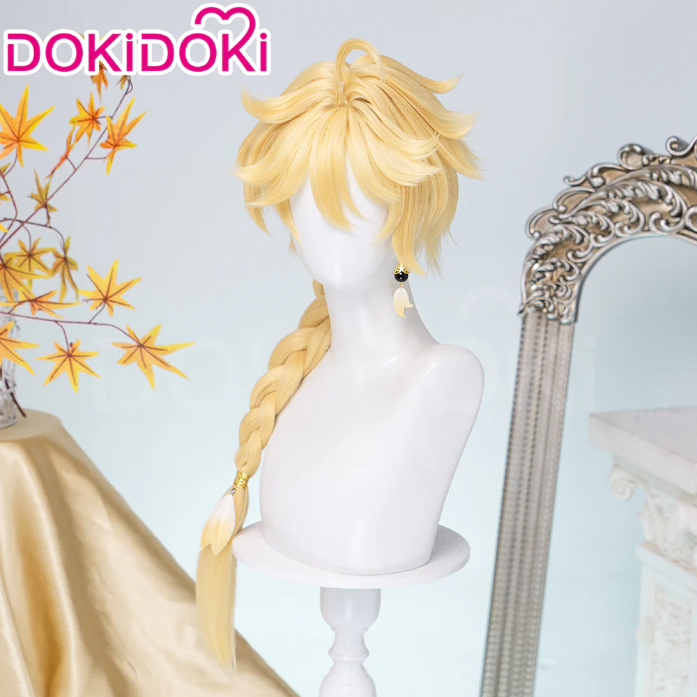 【Partially Ready For Ship】DokiDoki Game Genshin Impact Cosplay Traveler Aether Wig / Earring Long Blonde Hair Kong As Heaven and Earth Are Made Anew